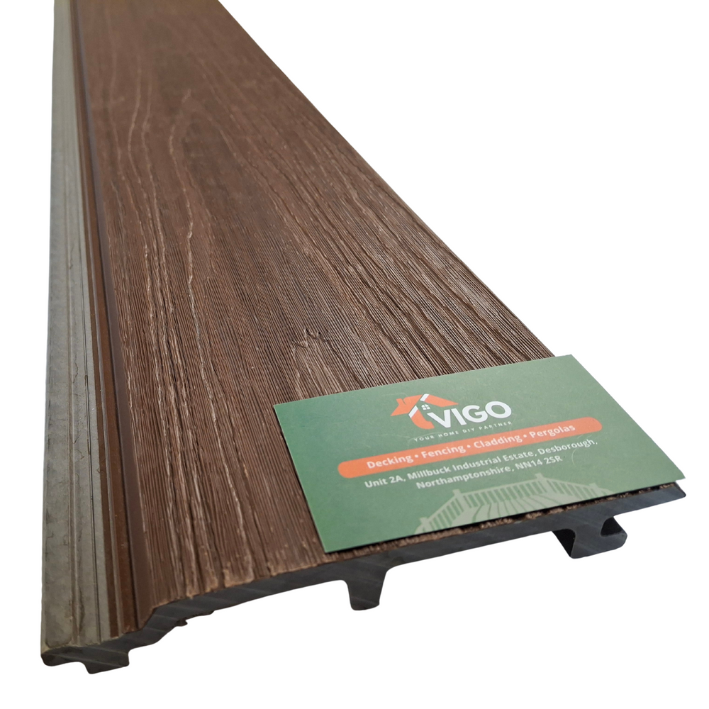 Co-extruded outer cap locks out fading, stains and moisture while delivering a deep, realistic wood-grain texture.