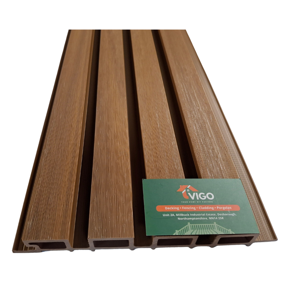 Decorative 219 mm slat profile creates on‑trend shadow lines for garden rooms, façades and boundary walls.